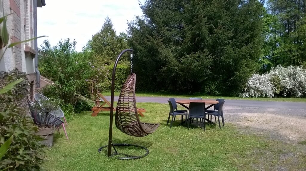 Un espace en extérieur est prévu pour vous, une table de salon de jardin, 6 chaises, 2 fauteuils, un bain de soleil, une balancelle, ainsi qu’un barbecue! Le tout dans un joli cadre verdoyant, de belles soirées en perspective !